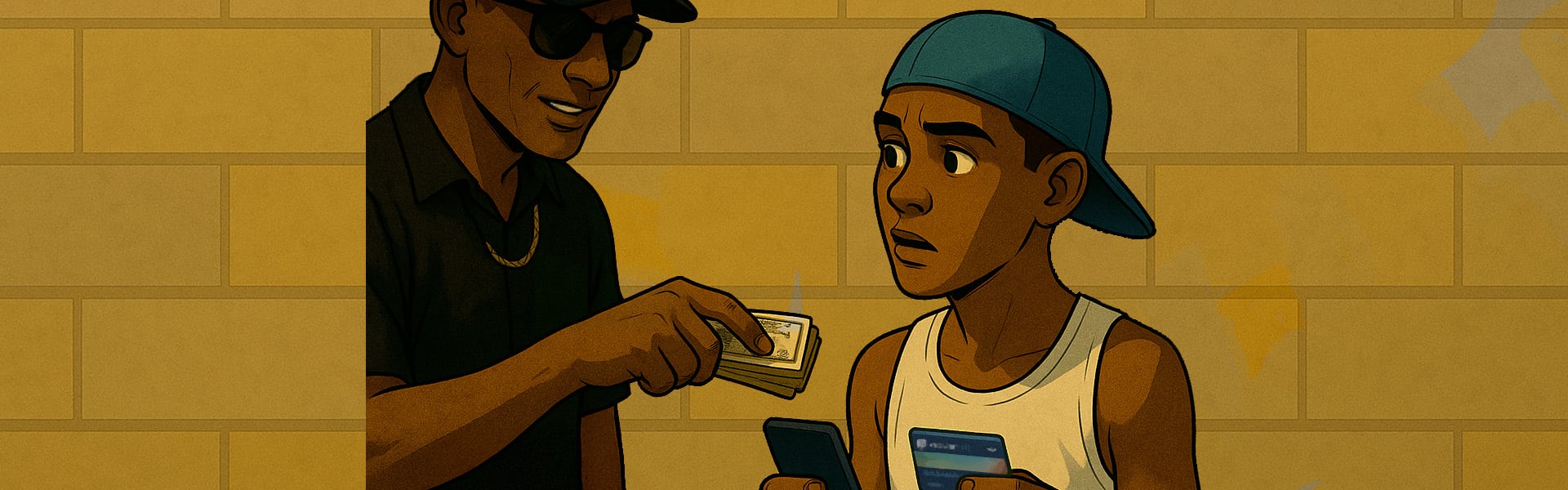 - Young people with a lot of cash or brand items without explanation.