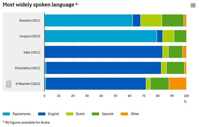 English is the most widely spoken language on St Maarten, Saba and St Eustatius. On Saba, 83 percent of residents speak English. On St Eustatius, the share is 81 percent and on St Maarten it is 71 percent.